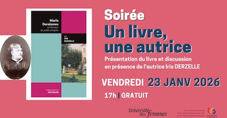 Nous avons le plaisir d'accueillir Iris DERZELLE, enseignante et chercheuse en philosophie, dont les travaux portent sur les événements socio-politiques et les figures oubliées de la fin du 19e siècle. Son livre "Maria Deraismes. La ferveur du juste progrès" a paru en mars 2025, consacré à cette figure injustement oubliée des luttes émancipatrices du 19e siècle. Sa statue fut en effet détruite par le gouvernement de Vichy avant d’être érigée de nouveau.